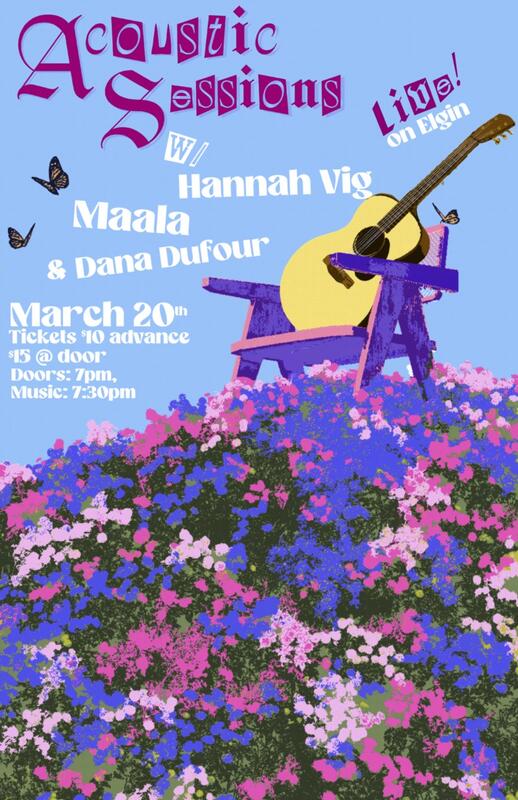 Join indie folk/pop singer-songwriters Hannah Vig, Dana Dufour, and Maala for a cozy night of acoustic performances.