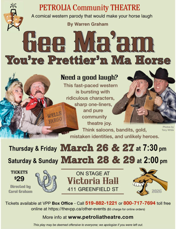 Tickets available at VPP Box Office - Call 519-882-1221 or 800-717-7694 toll-free