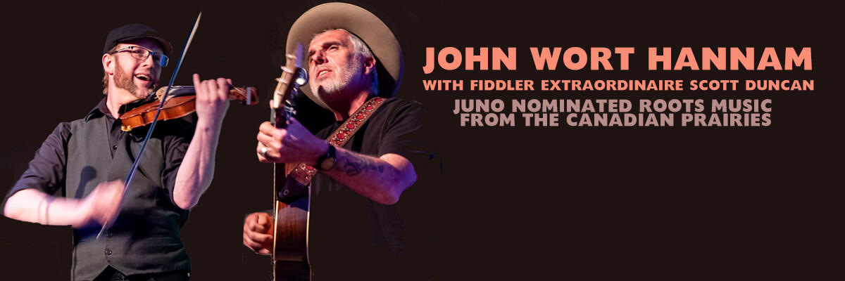 Alberta's John Wort Hannam has been on his roots-fueled troubadour journey for two decades, spinning song writing gold from the chaff of the lives he has encountered an within his fertile imagination. Twenty years into his career, he shows no sign of slowing down. In fact, he appears to be gaining both momentum and a wider audience. Winning two 2023 Canadian Folk Music Awards for Solo Artist of the Year and Contemporary Album of the Year. John has enjoyed a lifelong passion for singing and audiences and critics hear something special in his narrative, lyrically driven songs. Effortlessly mixing rich and clear timbered vocals with lyrics that tug at the heart, his sound is both unique and familiar.