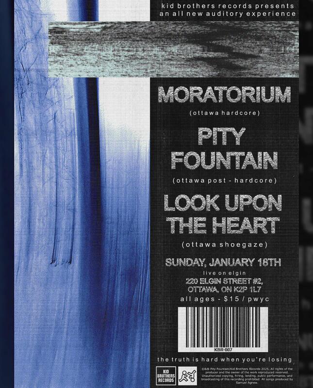 Kid Brothers Records Presents: Moratorium, with guests Pity Fountain and Look Upon The Heart, at Live On Elgin, Ottawa, ON, on January 18th, 2026