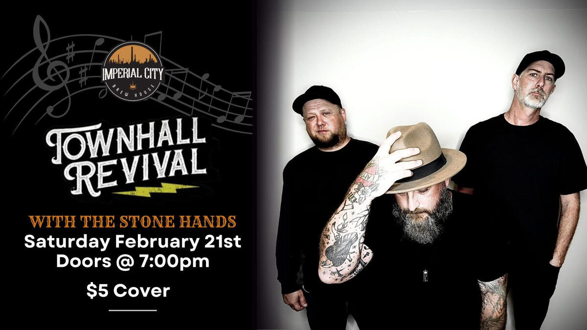 Get ready for a night of great roots-inspired sounds on Saturday, February 21st at Imperial City Brew House! Doors open at 7:00 PM, with live music starting at 8:00 PM featuring Townhall Revival with special guests The Stone Hands.